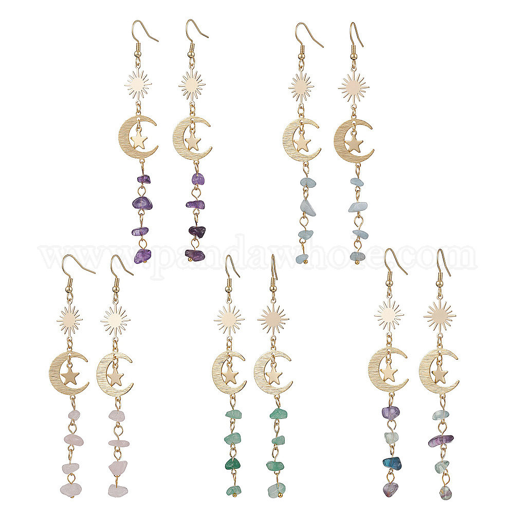 Серьги с подвесками из драгоценных камней и луны, с 304 нержавеющей стали серьги крючки