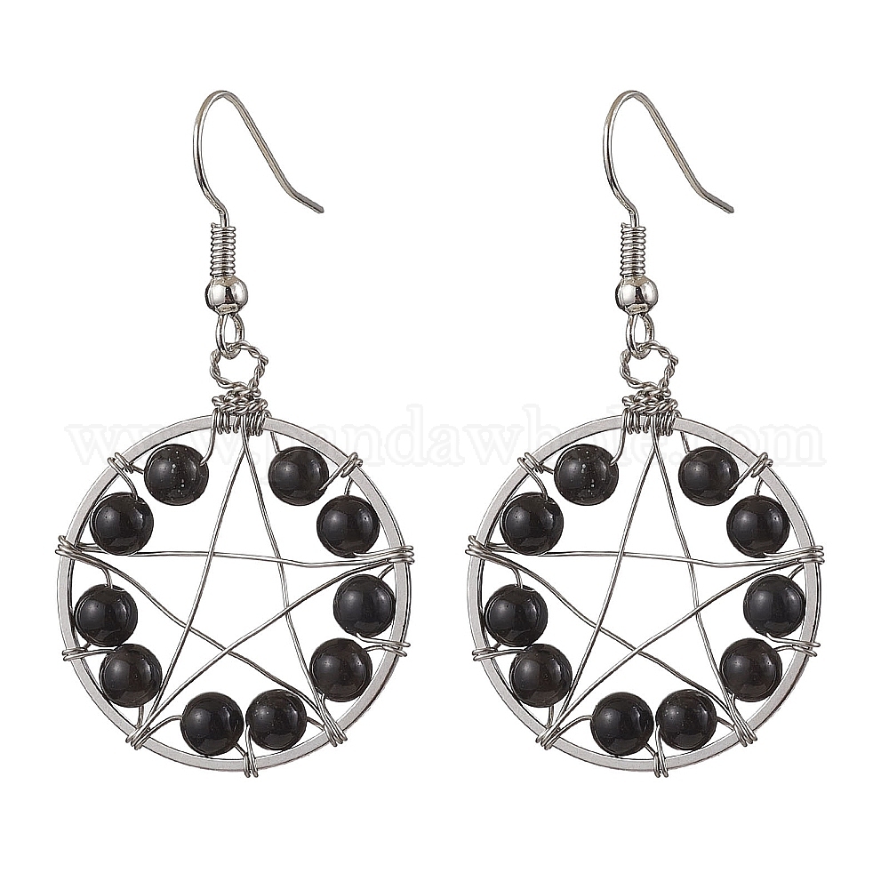 Плоские круглые серьги из натурального обсидиана со звездным узором, латунные серьги для женщин