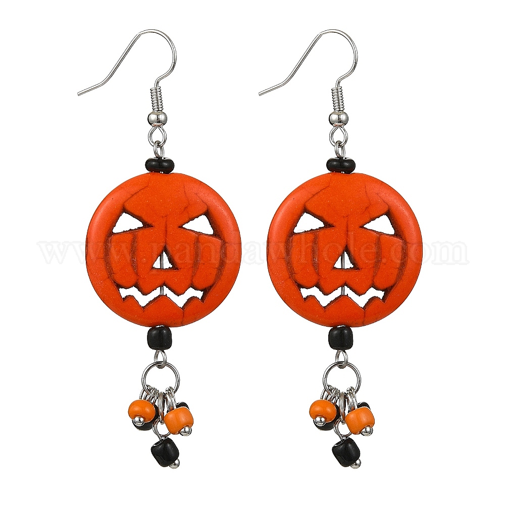 Подвески из смоляного сплава в виде тыквы на Хэллоуин, со стеклянными бисеринами