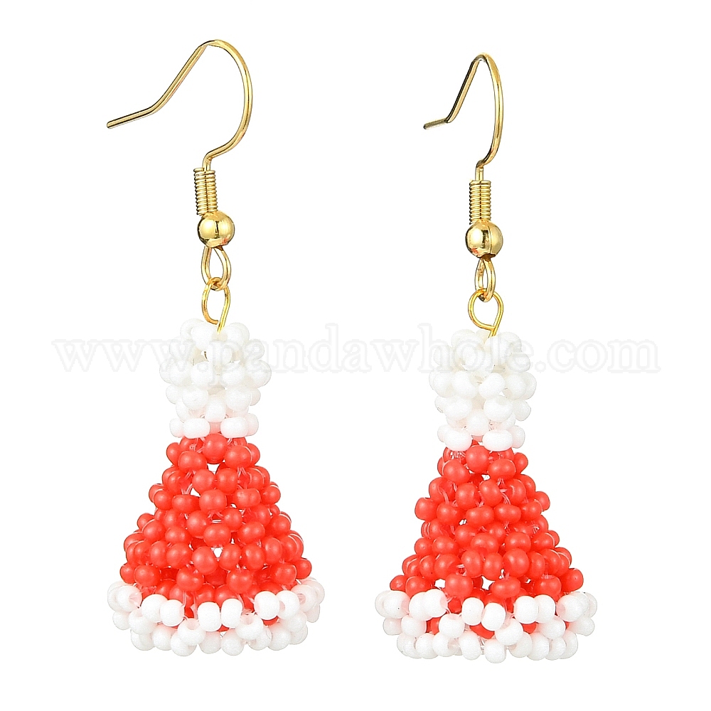 Рождественская шапка стеклянные семена плетеные серьги-подвески, с 304 нержавеющей стали серьги крючки, золотые