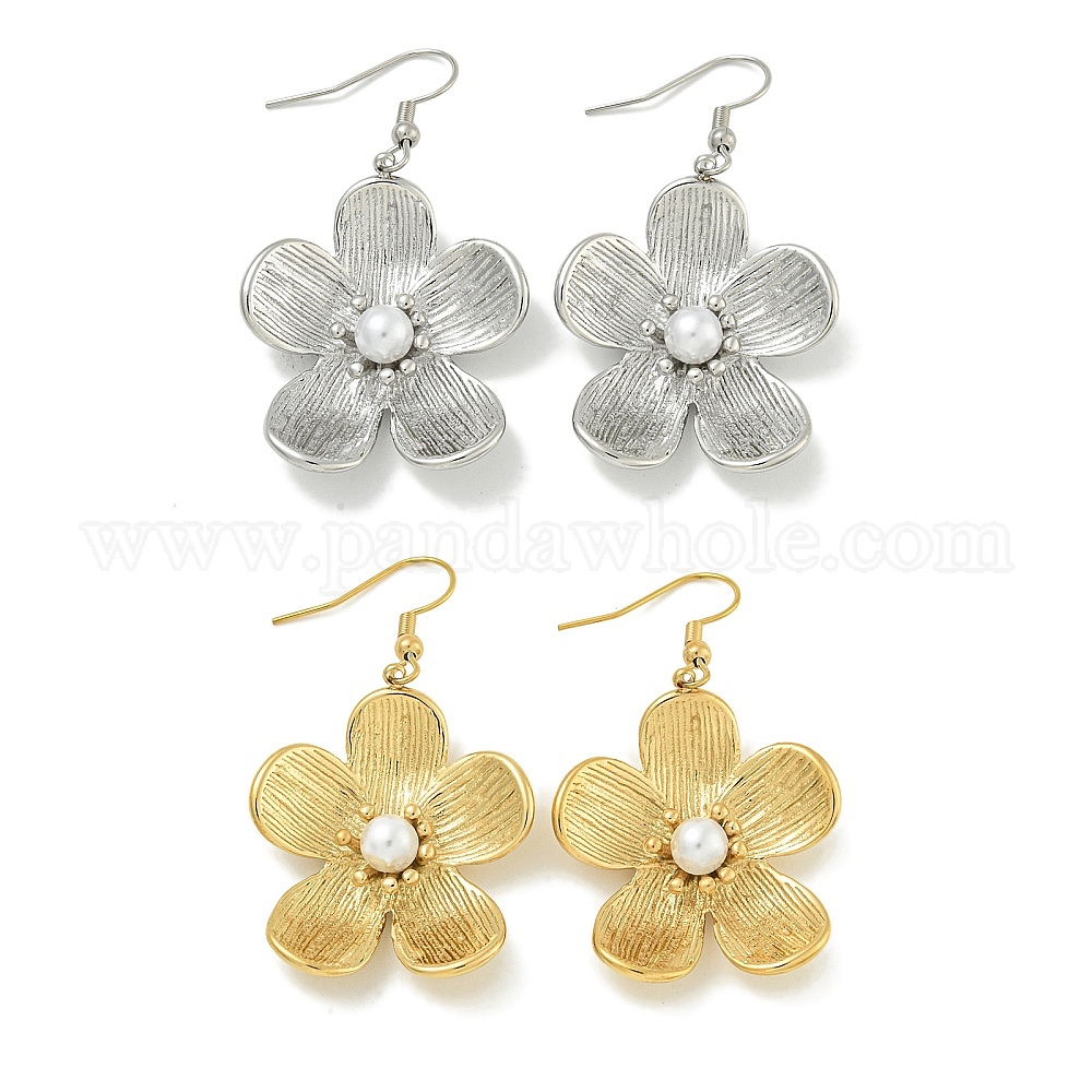 304 серьги-подвески из нержавеющей стали с абс-пластиком и жемчугом, полированный, цветок