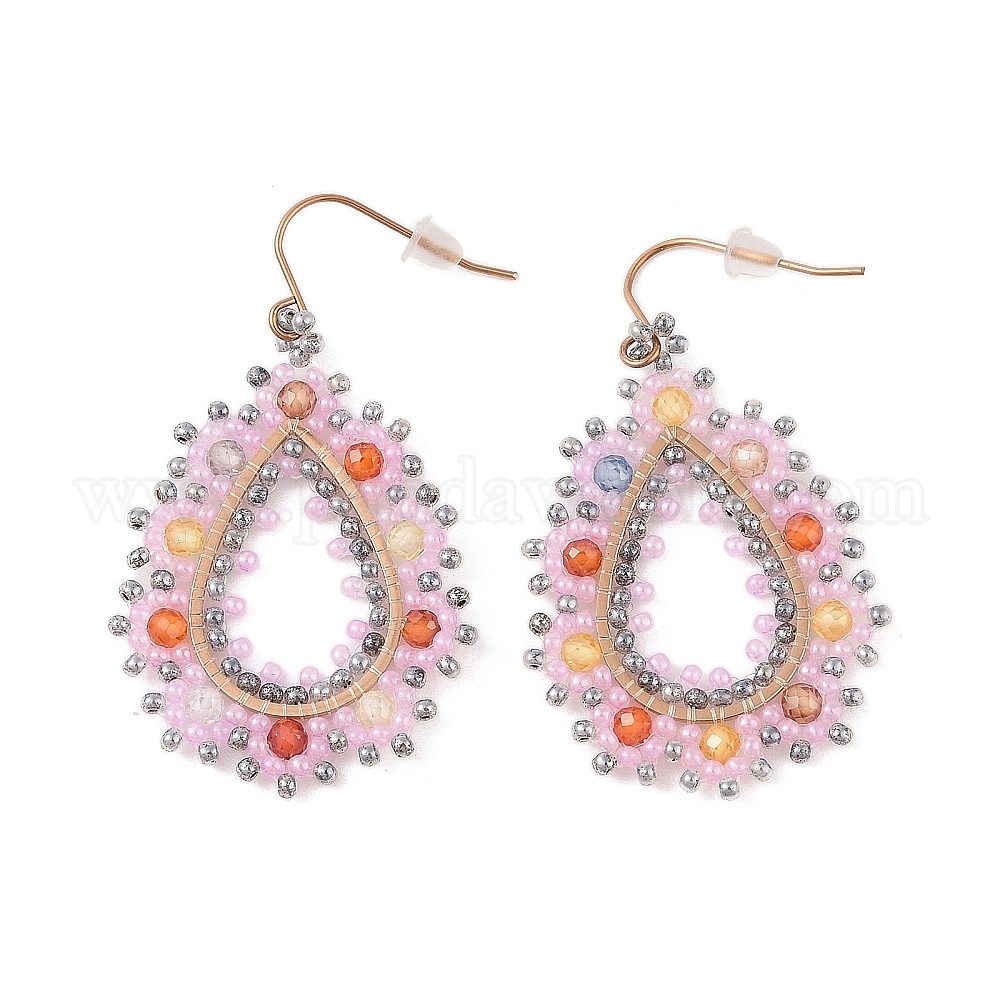 • Золотой Вакуумное покрытие pvd 316 серьги-подвески из нержавеющей стали, серьги из стеклянных бусин и микропаве из кубических цирконий, слеза, золотые, 48x30 мм