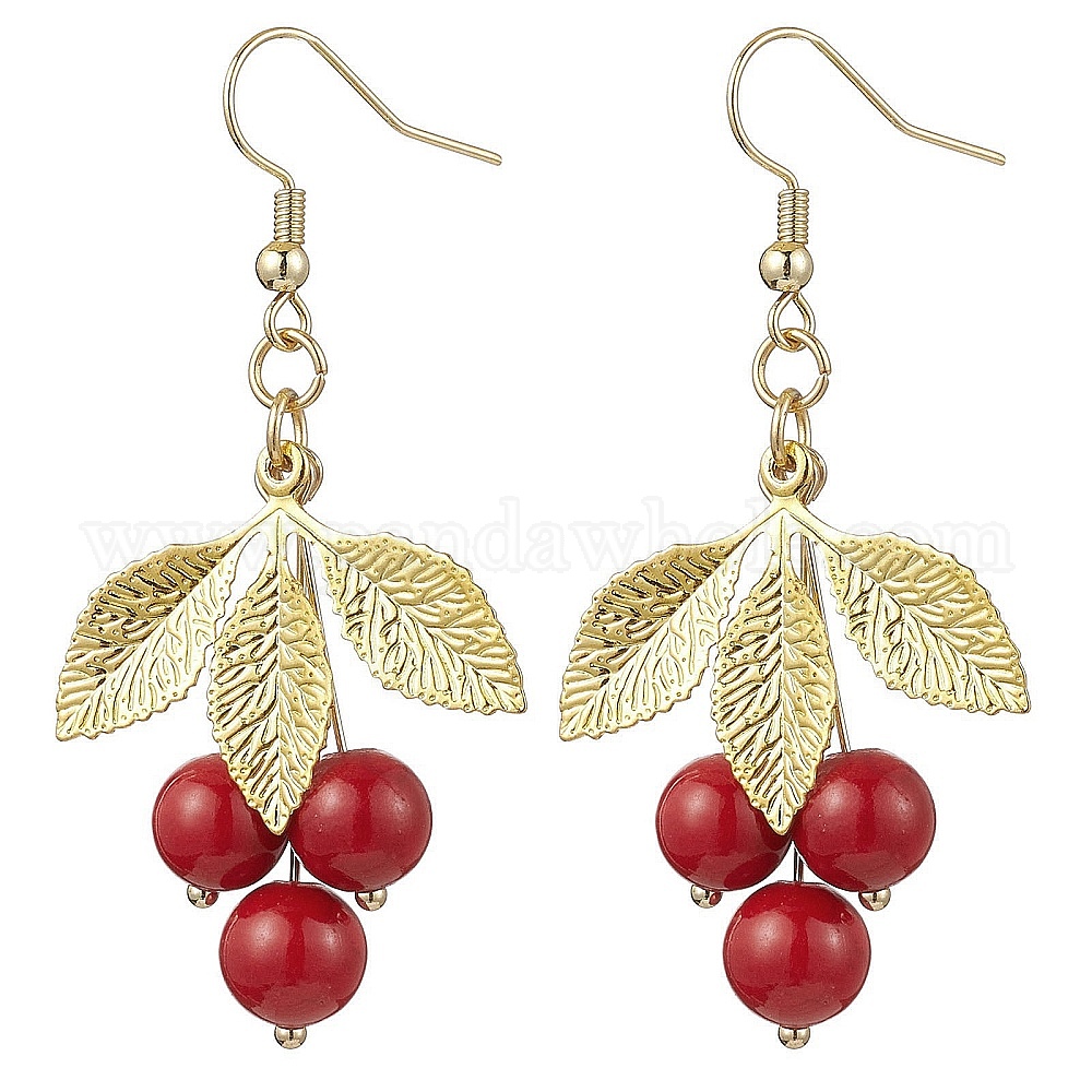 Серьги-подвески из натурального окрашенного нефрита машан, с латунными подвесками и крючками для сережек, лист, золотые