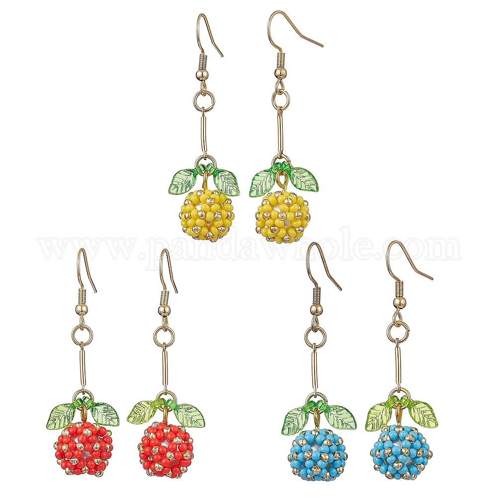Серьги-подвески из стеклянных бусин ручной работы, круглый цветок, золотые