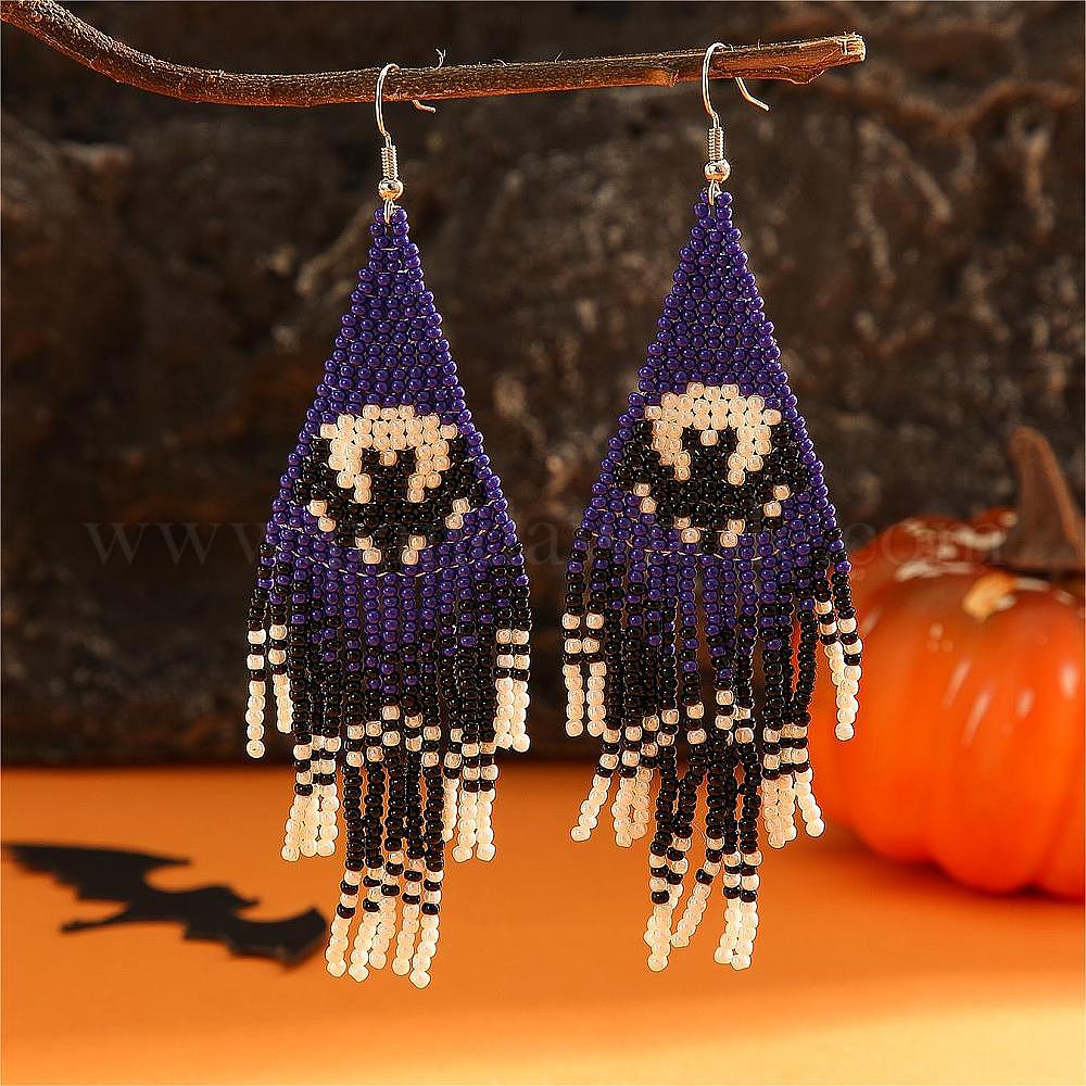 Серьги ручной работы из стеклянных бусин в стиле хеллоуин с узором летучая мышь для женщин