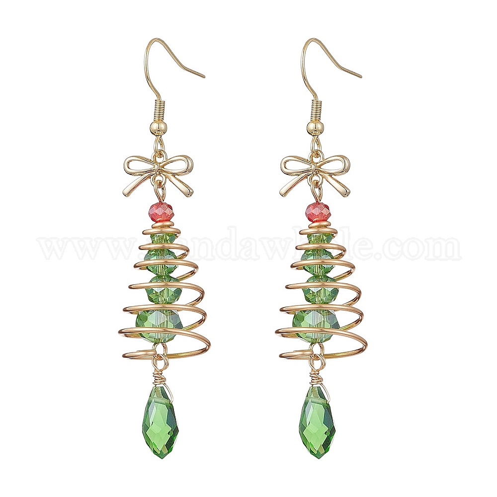 • Зеленый газон Елка со звездой латунные серьги-подвески из проволочного стекла, с 304 нержавеющей стали серьги крючки, серебряные, звезда, 70x15 мм