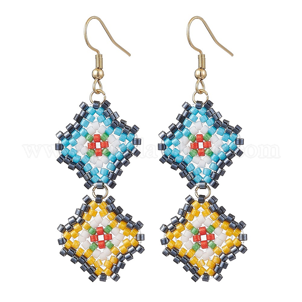 Болтающие серьги из стекла, с 304 швензами из нержавеющей стали, ромб
