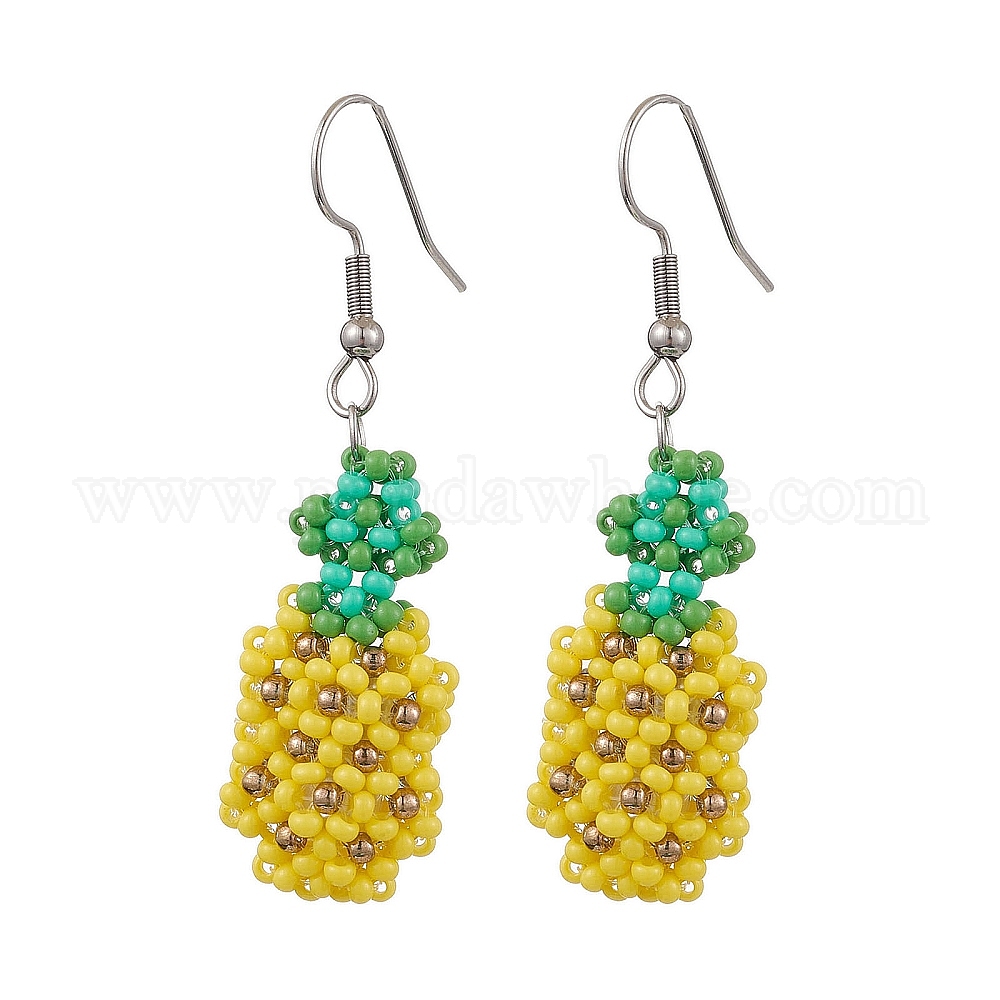 Серьги-подвески из стеклянного бисера в виде ананаса для женщин, цвет нержавеющей стали