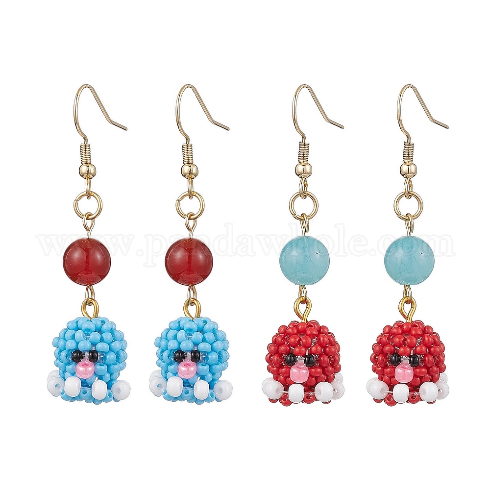 Серьги-подвески в виде осьминога из бисера ручной работы, с подвеской, золотые