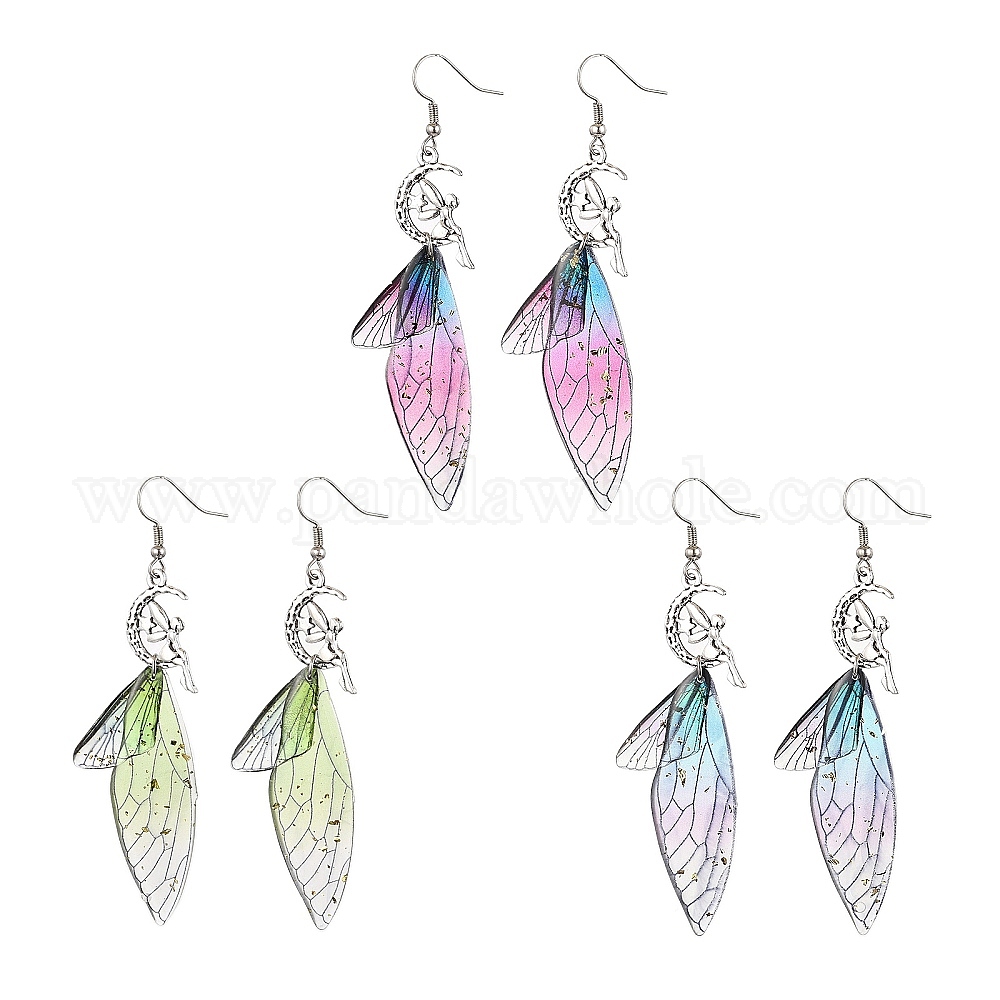 • (52) Непрозрачная лаванда 316 серьги-подвески в форме крыльев из хирургической нержавеющей стали, cmолой, платина, разноцветные, 86x24 мм