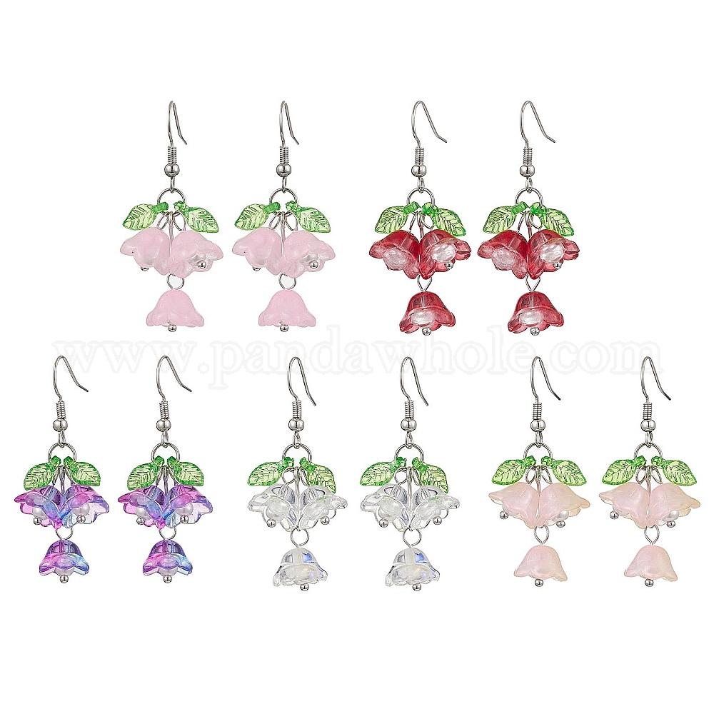 • (52) Непрозрачная лаванда Серьги-подвески из акрила и стекла в виде цветка, с  латунными крючками для серег, платина, разноцветные, 46x19 мм