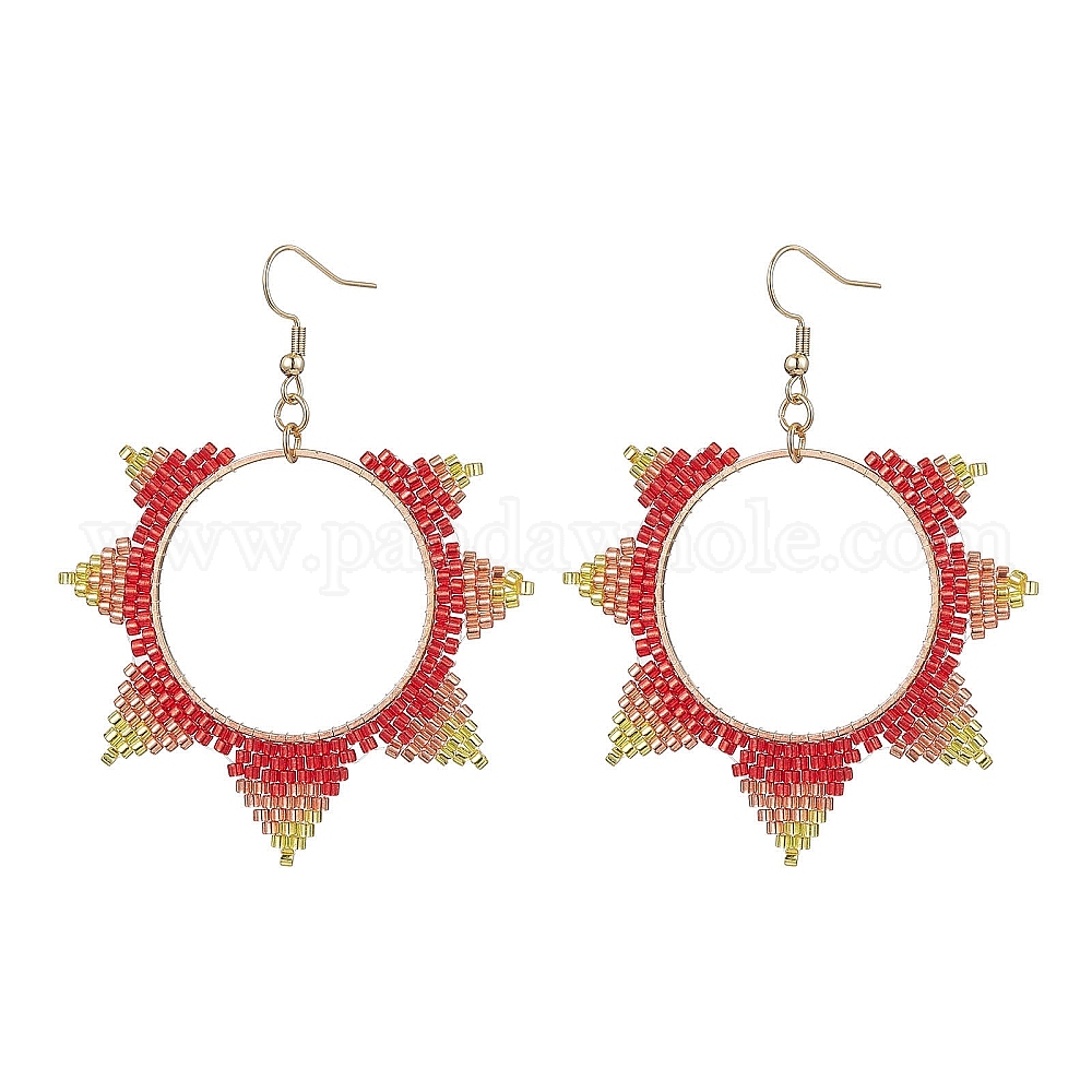 Серьги-подвески из стеклянных бусин ручной работы в виде солнца, латунь болтаться серьги, золотые