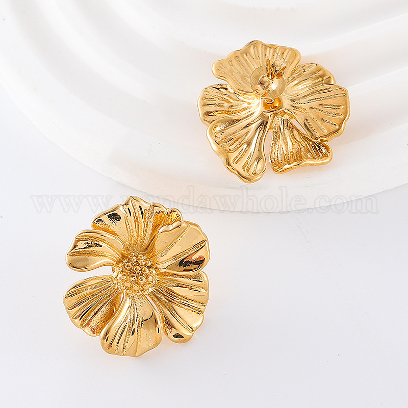 Стильные 304 серьги-гвоздики в форме цветка из нержавеющей стали, модный и универсальный