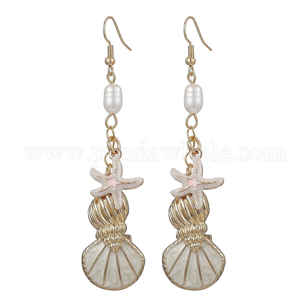 Болтаться серьги сплава эмали, с акриловым жемчуг имитация, формы раковины