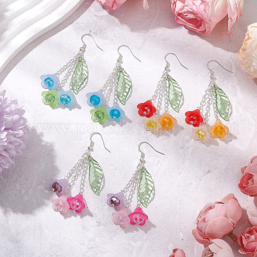 Акриловые серьги болтаться, с медными штырьками серьги, цветок, серебряные