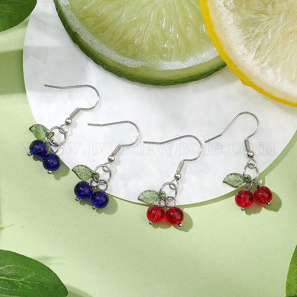 Вишневые стеклянные серьги-подвески, с железными крючками для сережек и акриловыми подвесками, платина