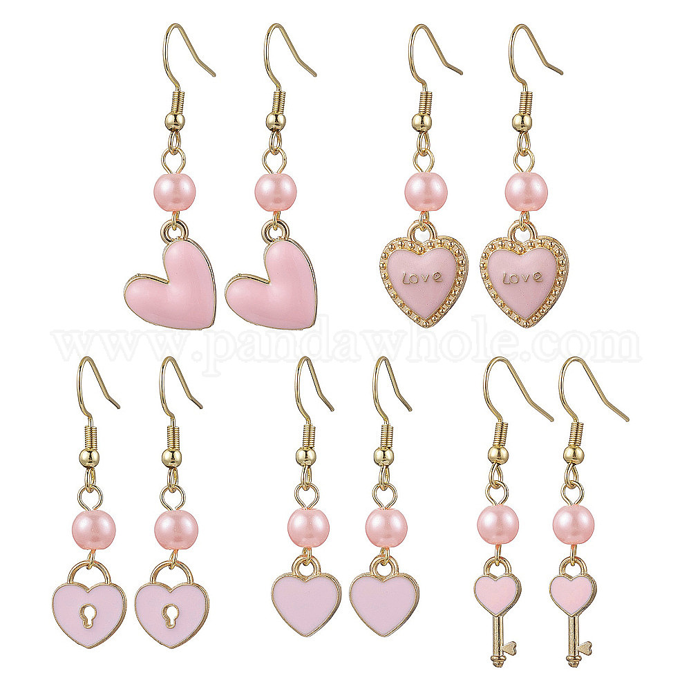 Серьги-подвески в форме сердца из сплава эмали, 304 нержавеющей стали серьги крюков, золотые, День святого Валентина