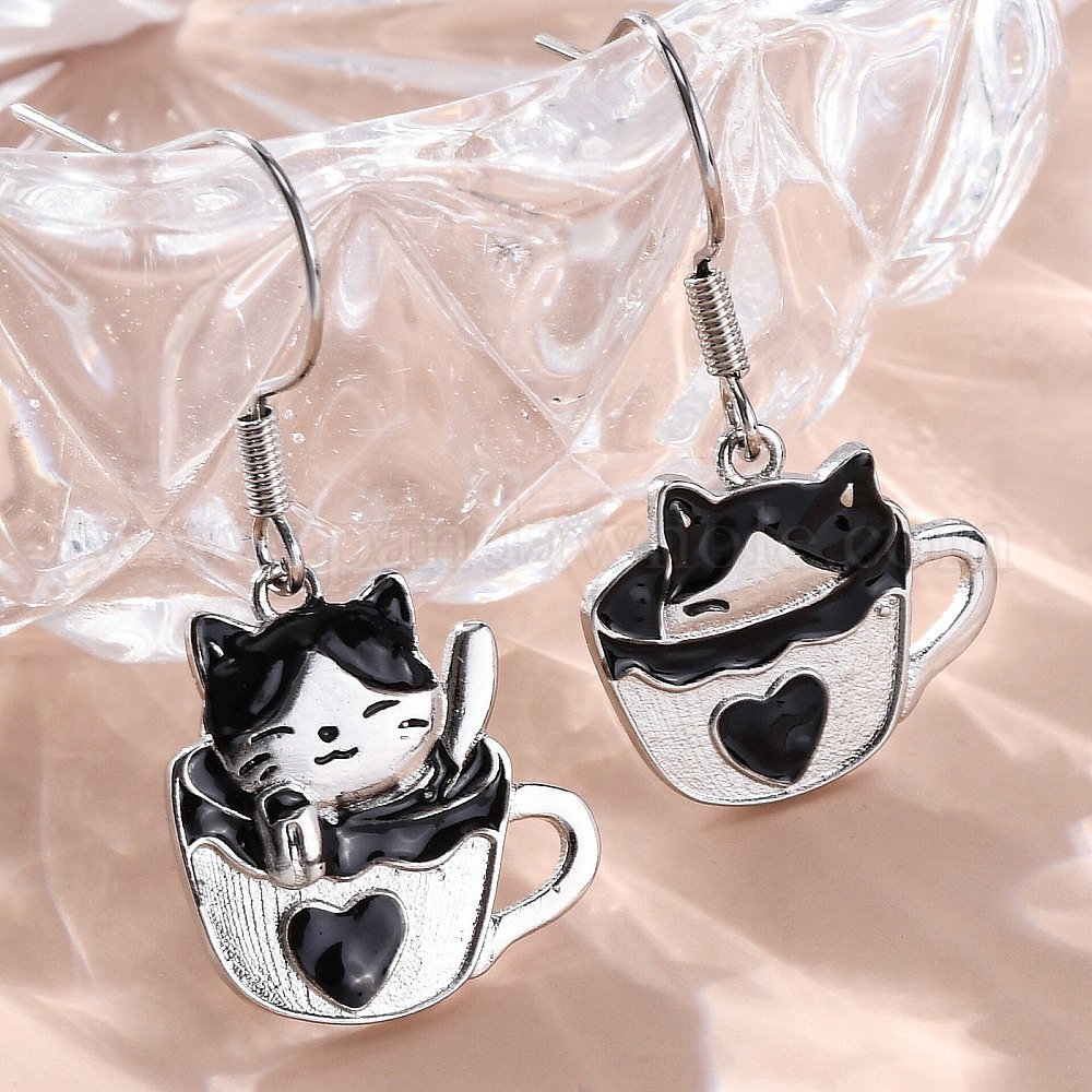 Серьги-подвески в форме кошки из латуни, с эмалью