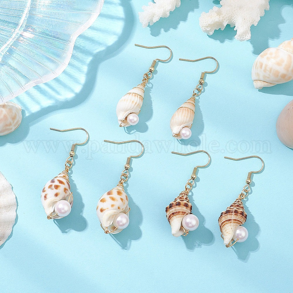 3 пара 304 серьги-подвески из нержавеющей стали для женщин и мужчин, с естественной оболочке, формы раковины
