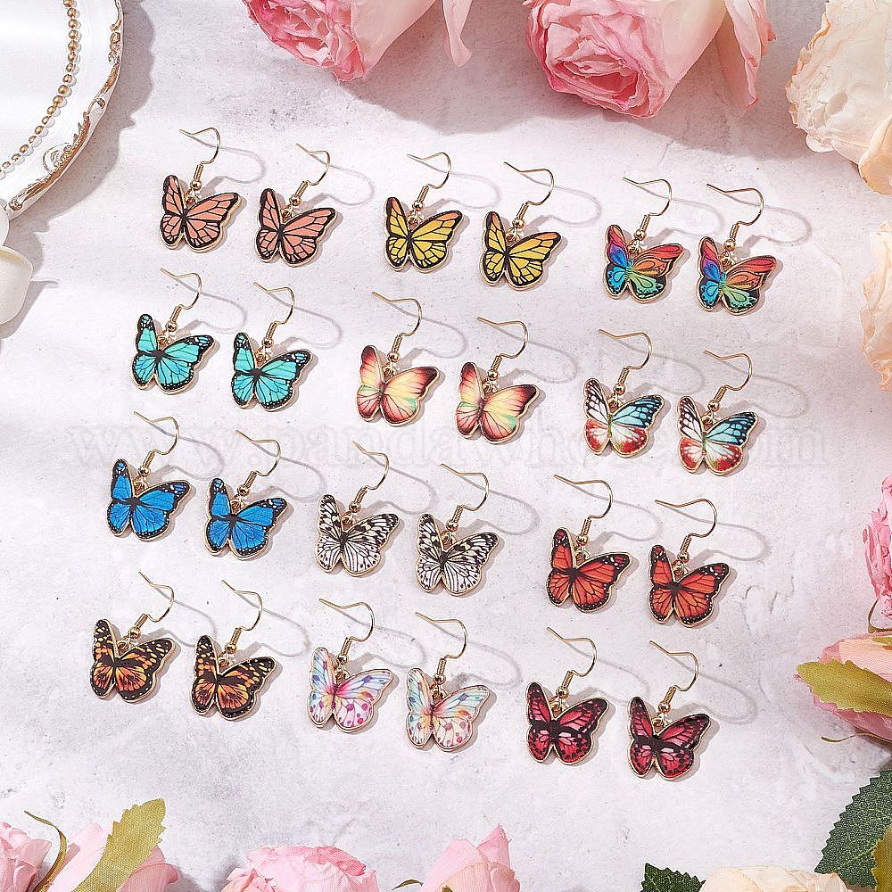 12 пары сережек-подвесок из сплава с эмалью, с 304 нержавеющей стали серьги крючки, бабочка, золотые