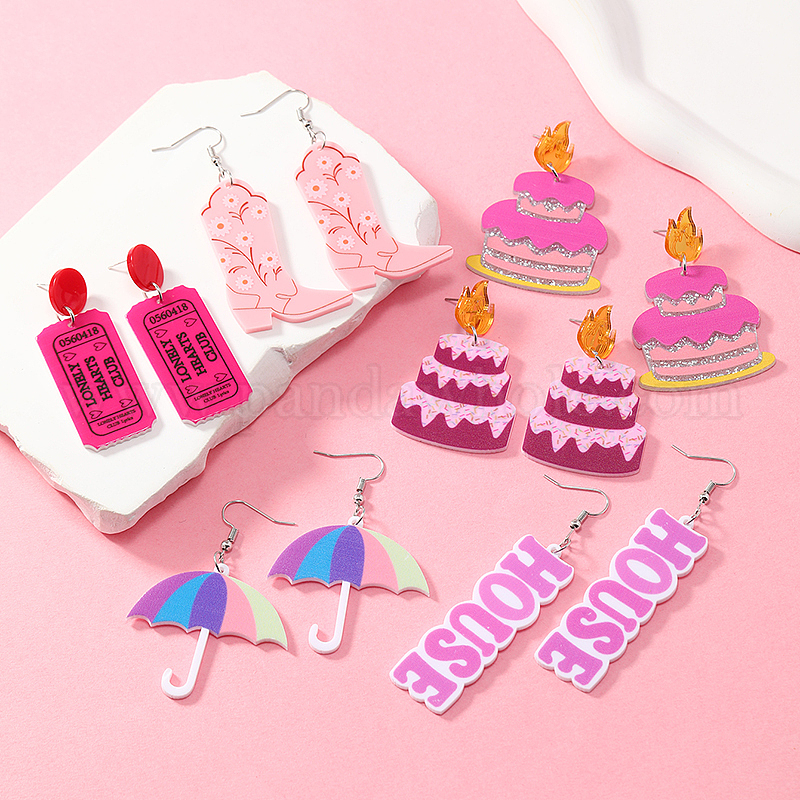 Розовые акриловые серьги-подвески с рисунком из мультфильма, платина