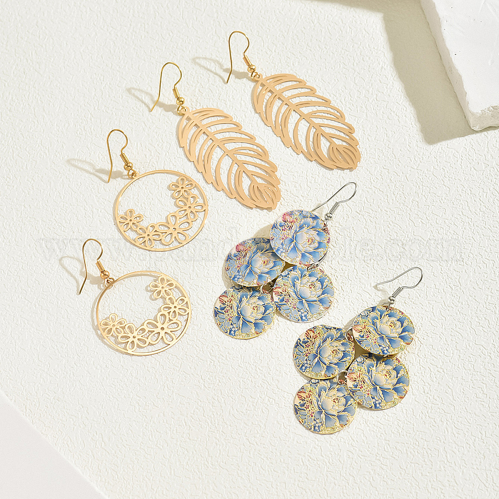 • Плоский Круглый Элегантные железные серьги-подвески, золотые, плоско-круглые, 48x31 мм
