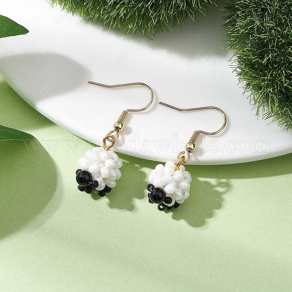 • Золотой 304 из нержавеющей стали болтаться серьги, с подвеской из овечьего стекла и натуральным черным ониксом, золотые, 30x12 мм