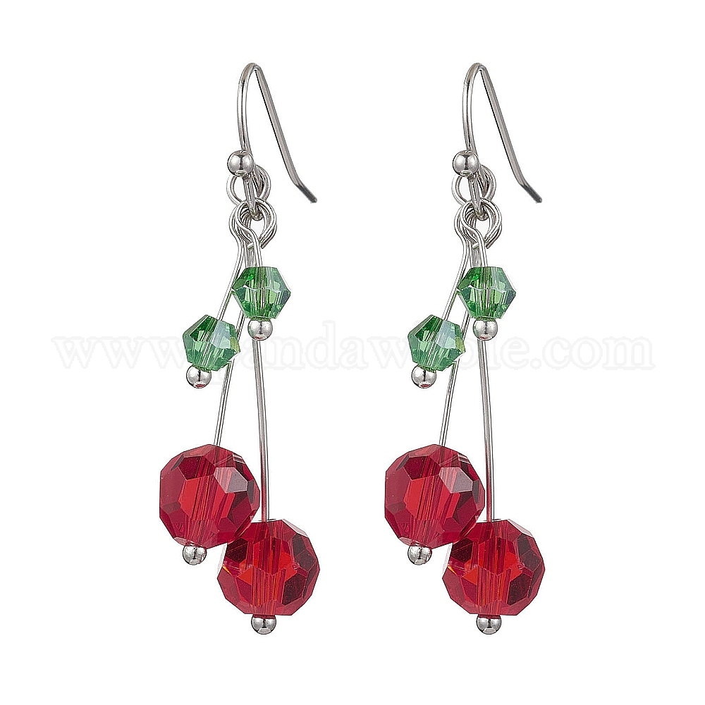 Вишневые стеклянные серьги-подвески, с 316 хирургическими крючками для серег из нержавеющей стали, цвет нержавеющей стали