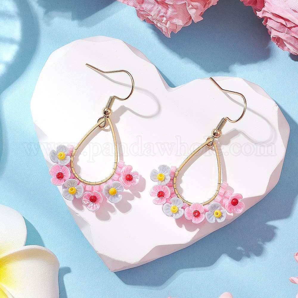 Серьги-капли из смолы и стеклянных бусин, С 304 результатами из нержавеющей стали, золотые
