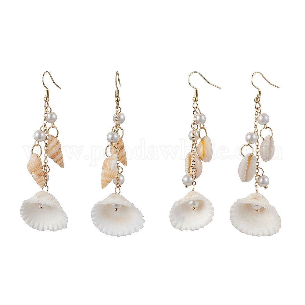 304 серьги-подвески в форме ракушки из нержавеющей стали, с натуральной ракушкой каури и искусственным жемчугом