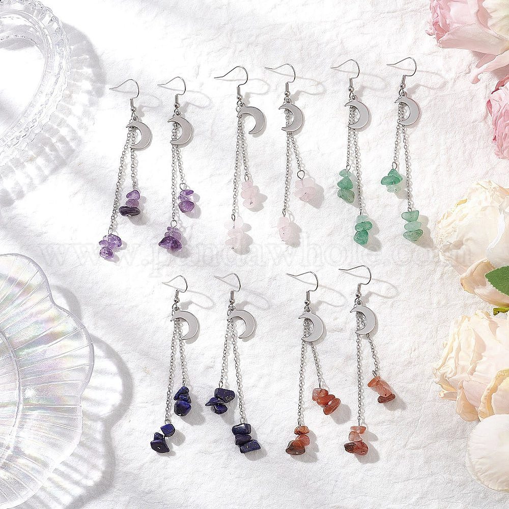 304 серьги-подвески в форме луны из нержавеющей стали, с натуральным смешанным камнем бусина бусина бусина