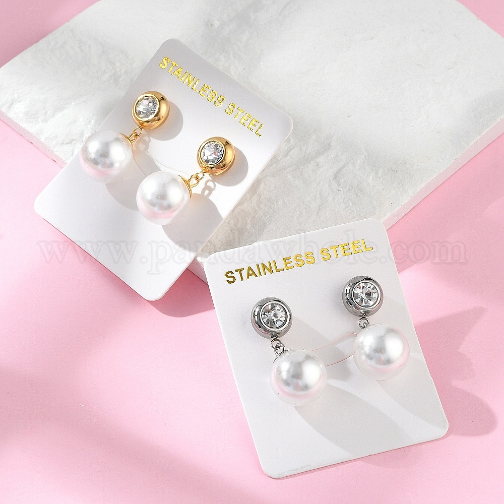 • Нержавеющая Сталь Цвет 304 круглые серьги-гвоздики с подвесками из пластика и нержавеющей стали с жемчугом, со стразами, цвет нержавеющей стали, 25x11.5 мм