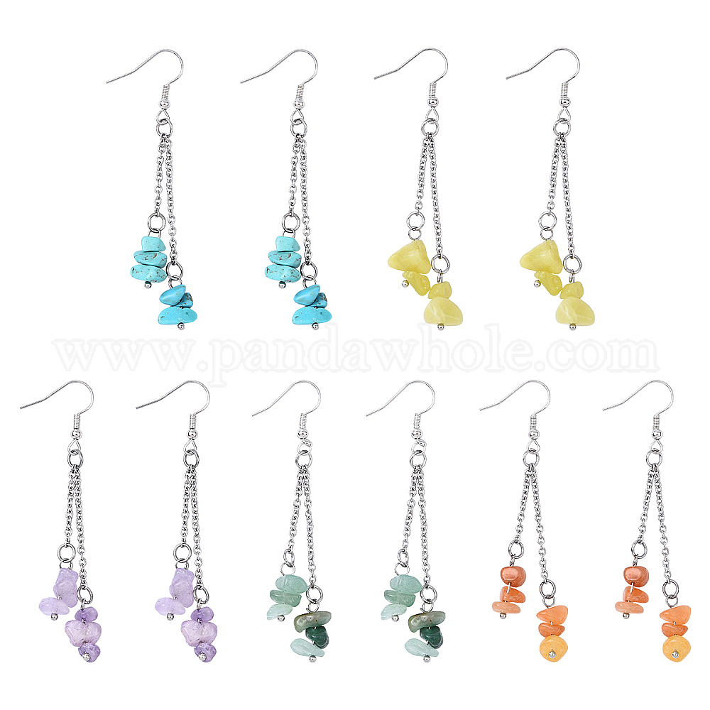 5пара латунных сережек-подвесок, с натуральной и синтетической крошкой