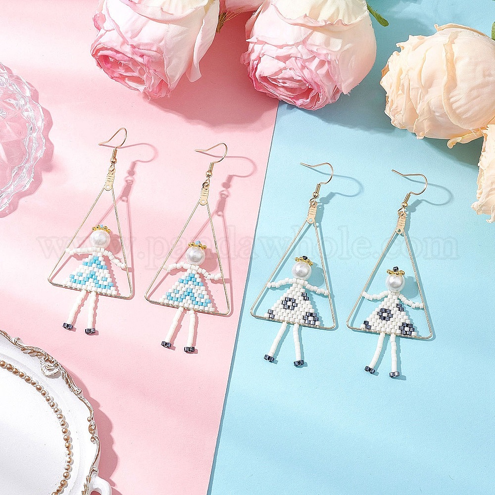 2пара сережек-подвесок для девочки с треугольными латунными стеклянными бусинами, золотые
