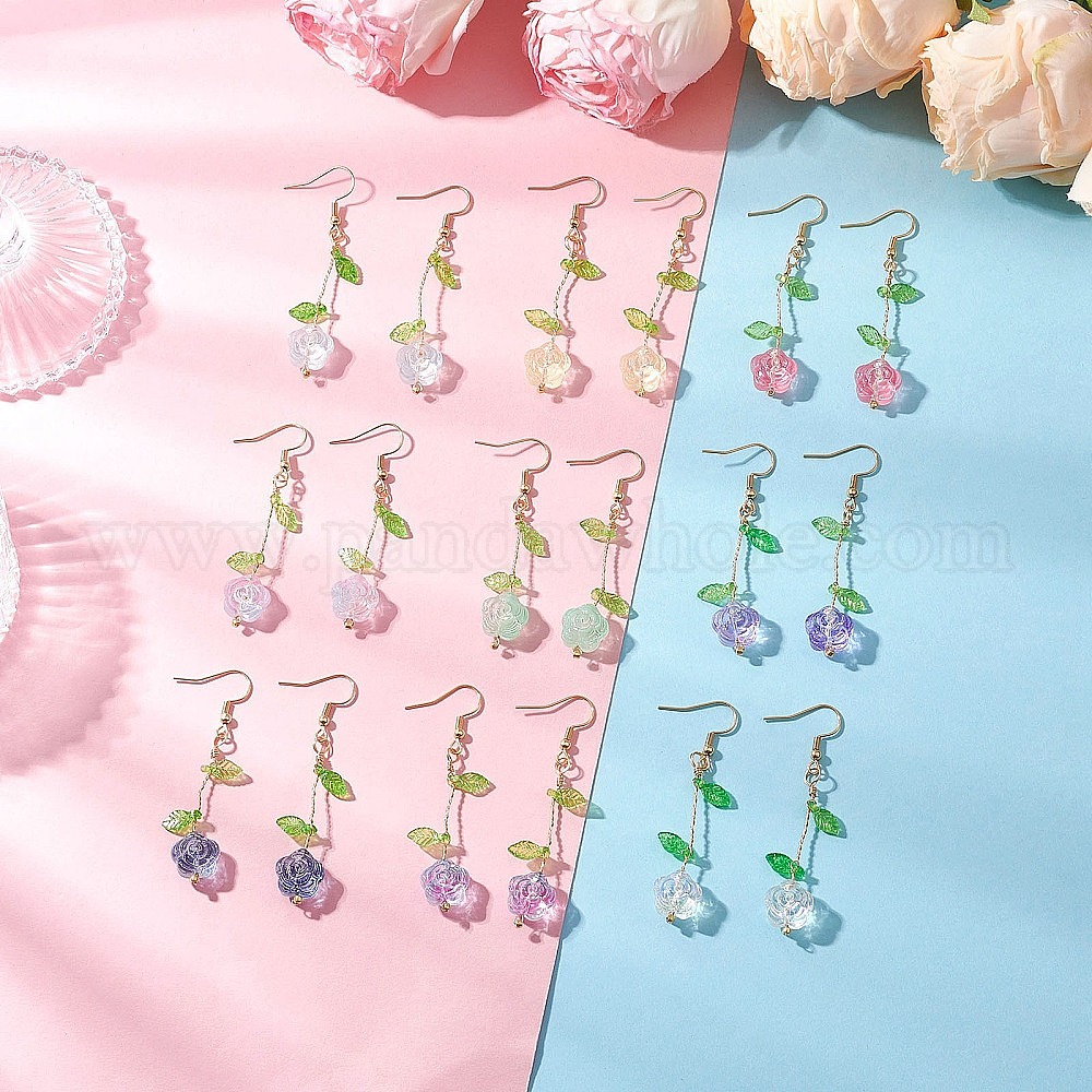 9 пары стеклянных висячих сережек в форме цветка, с акриловой