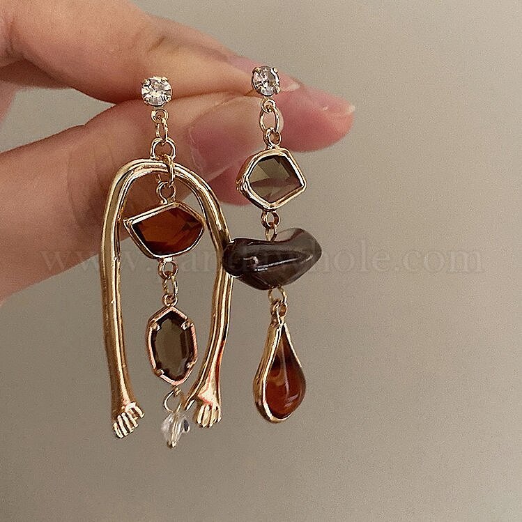 Серьги-подвески из цинкового сплава и смолы, самородки