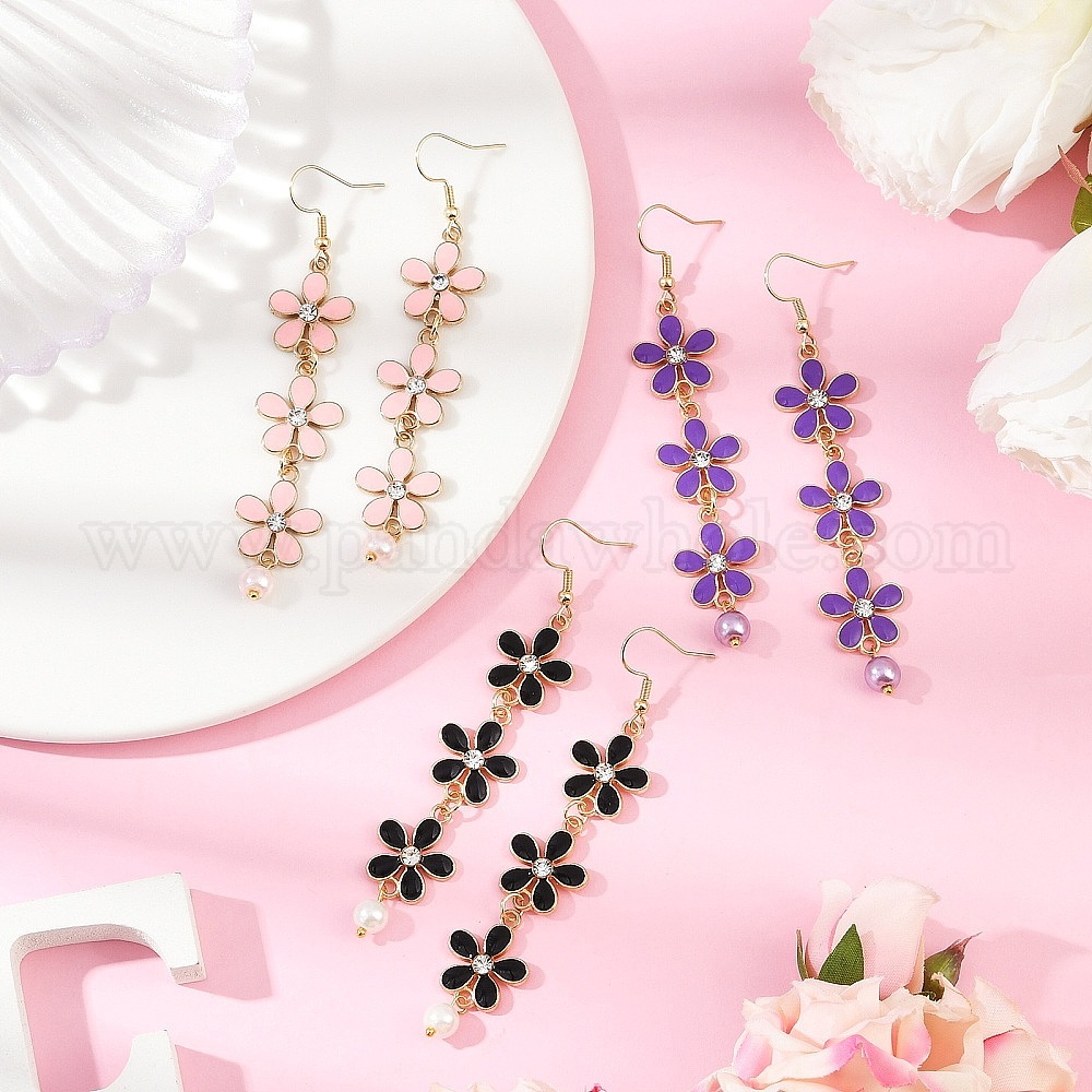 Серьги с подвесками в виде цветов из цинкового сплава и эмали, со стеклянным жемчугом и 304 крючками для сережек из нержавеющей стали, золотые