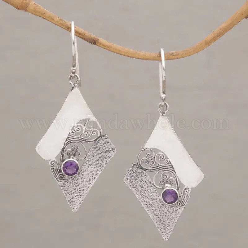 Серьги-подвески из цинкового сплава в форме ромба, со стразами