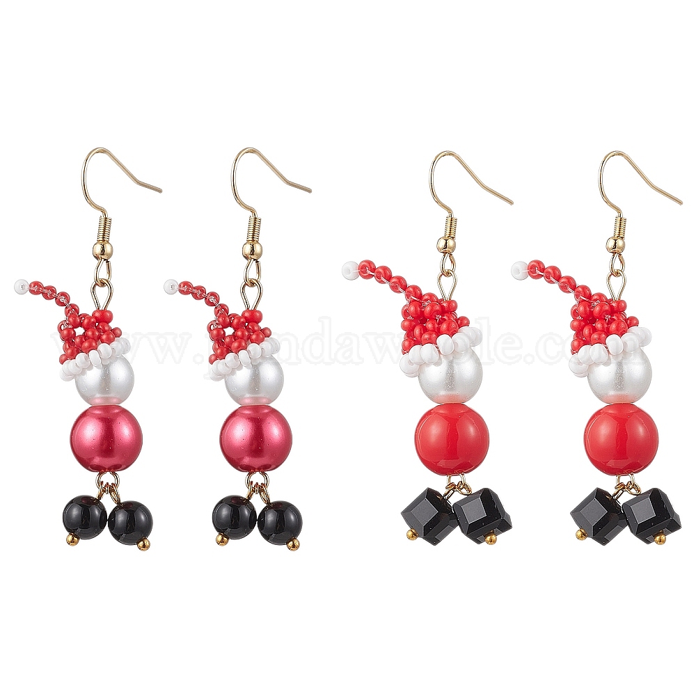 • Красный Стекло бисер мотаться серьги, снеговик, золотые, красные, 55x16 мм