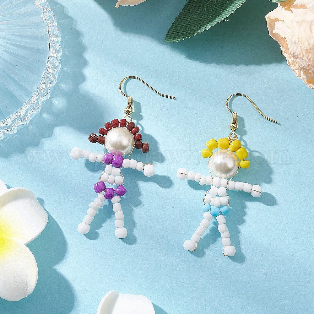Серьги-подвески из латунного стекла, девочка и мальчик, слева и справа, золотые