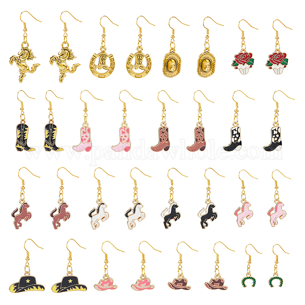 16 пары 16 стили сплав эмали с железными подвесками, лошадь/ковбойская шляпа/ковбойские сапоги