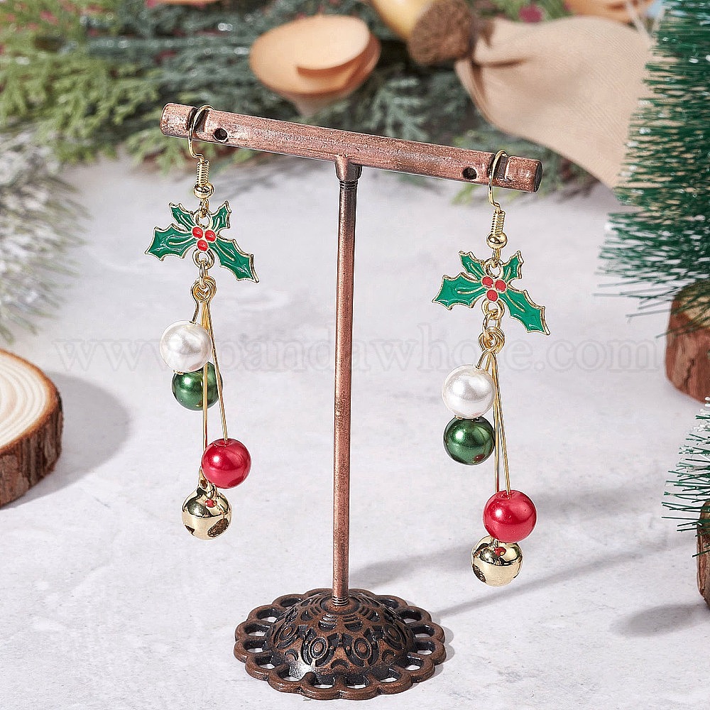 Серьги-подвески из латунного стекла с жемчужными листьями, со сплавом и эмалью, золотые