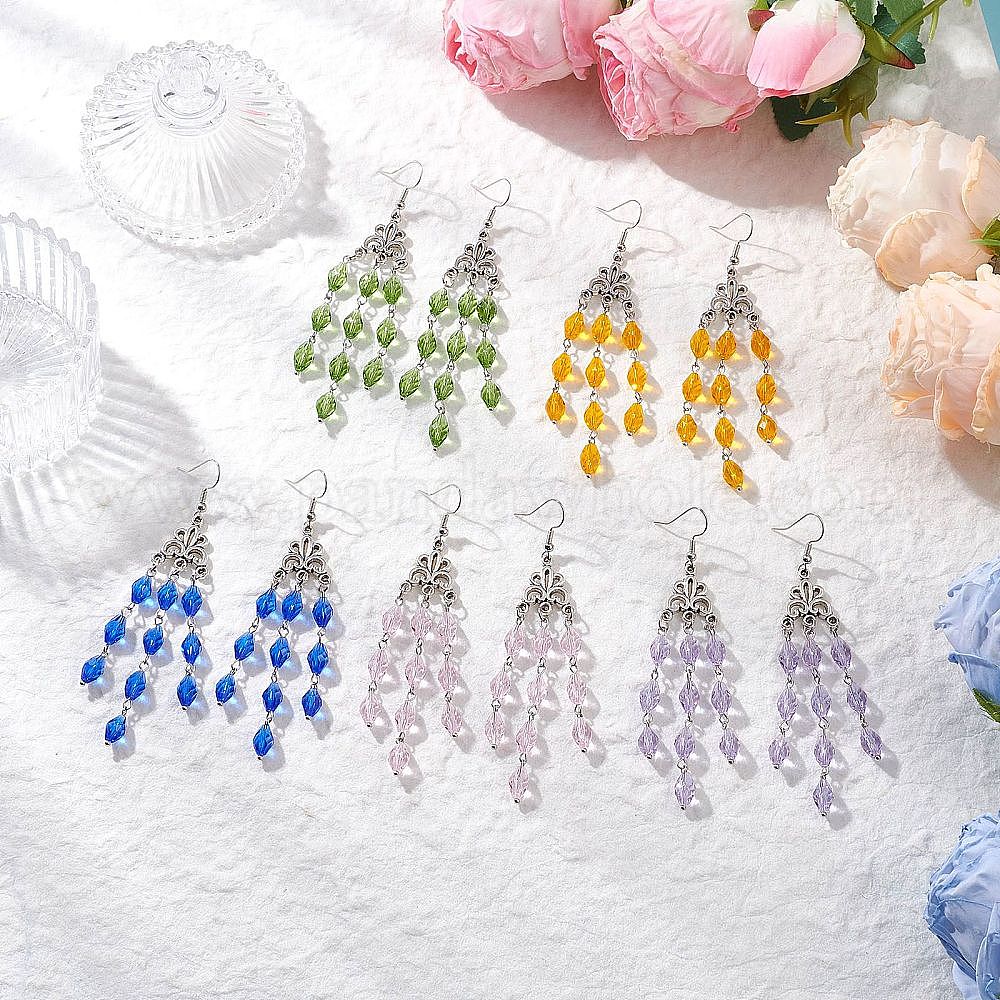 5 пары сережек-подвесок с имитацией австрийского хрусталя, двухконусные, с тибетском стиле сплава