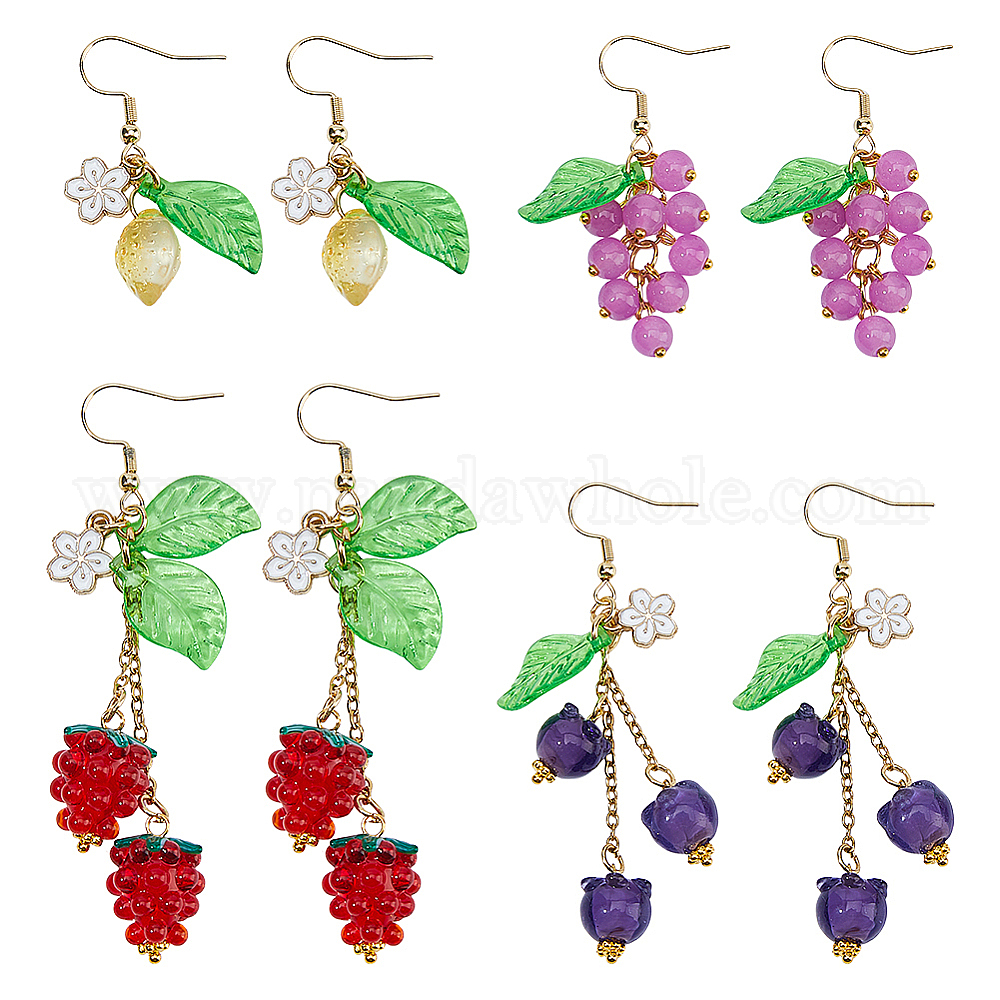 4 пары 304 серьги-подвески из нержавеющей стали, с ручной работой, лэмпворком, искусственным нефритом и акрилом, фрукты шаблон, золотые