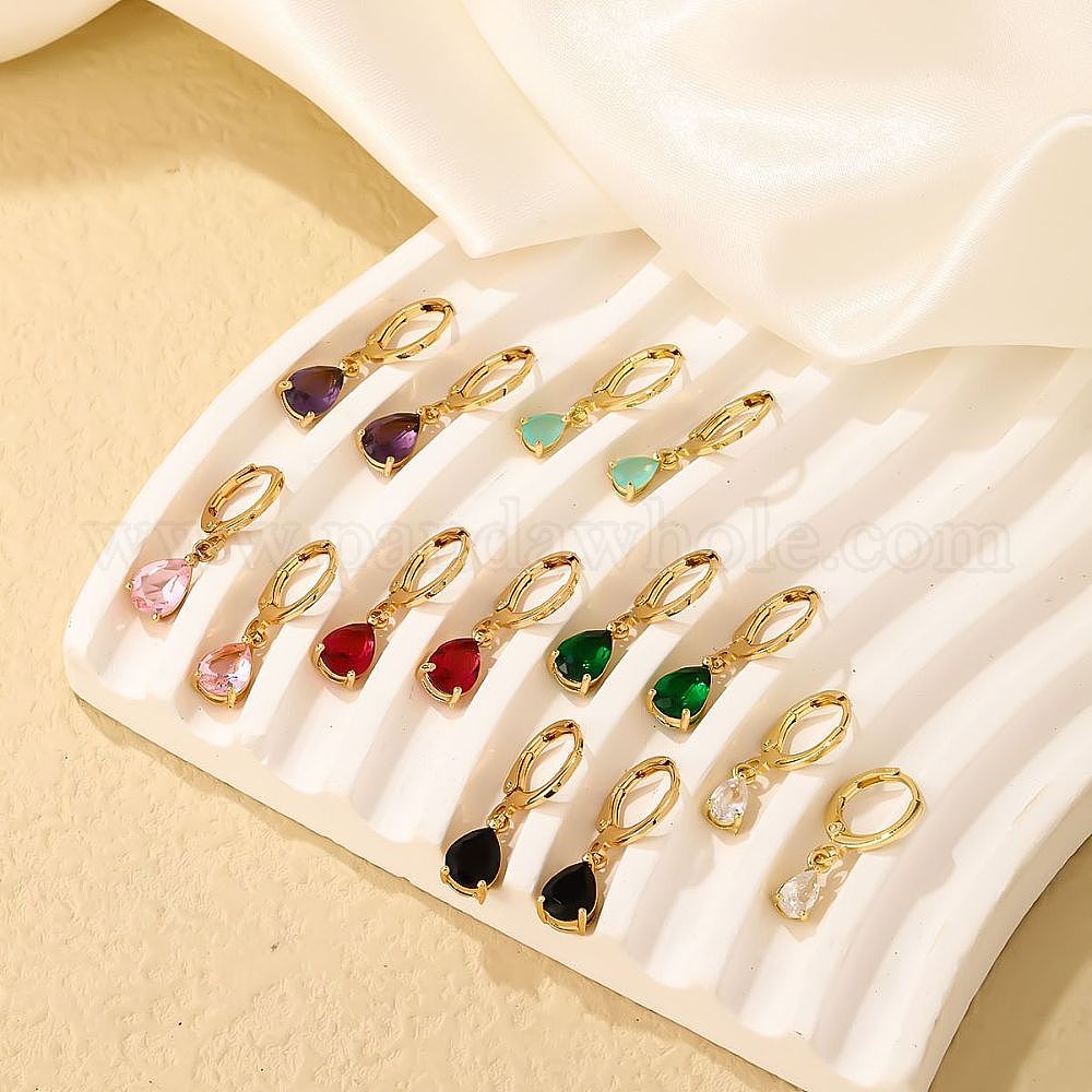 Латунь кубического циркония болтаться серьги, слеза, золотые / платиновые