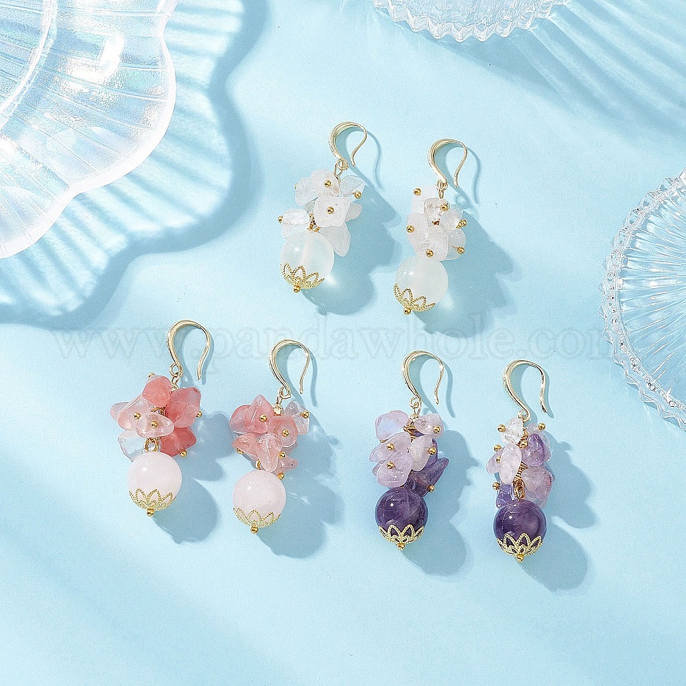 Серьги с бусинами и драгоценными камнями, с латунными крючками для серег, золотые