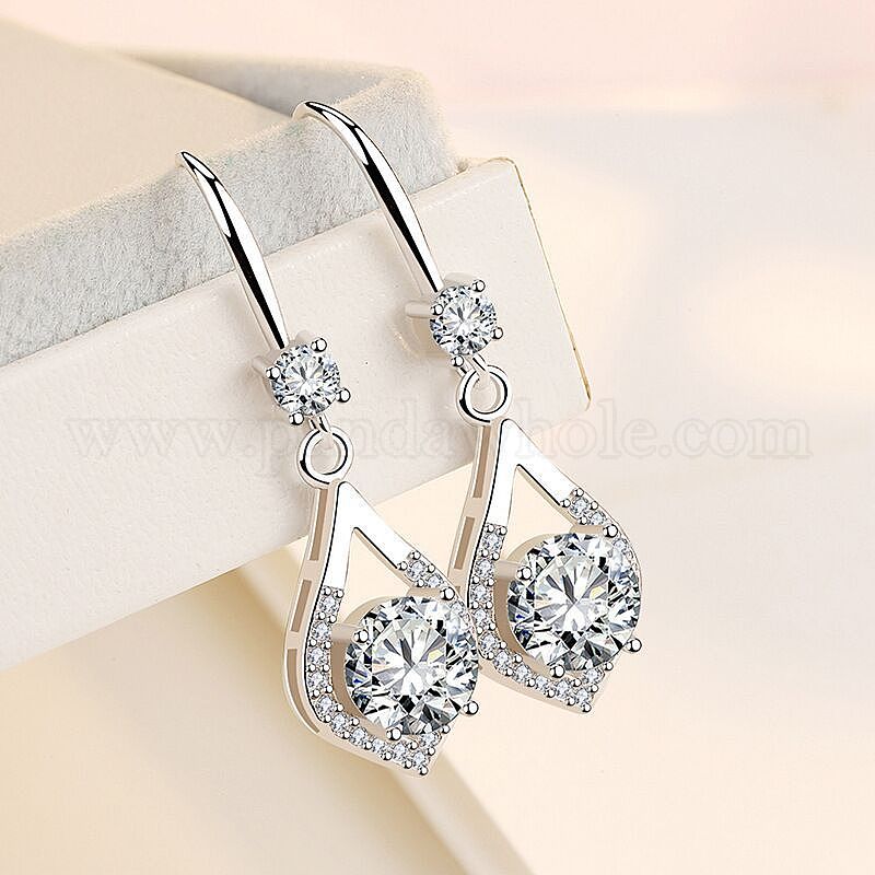 Латунь кубического циркония болтаться серьги, слеза, платина