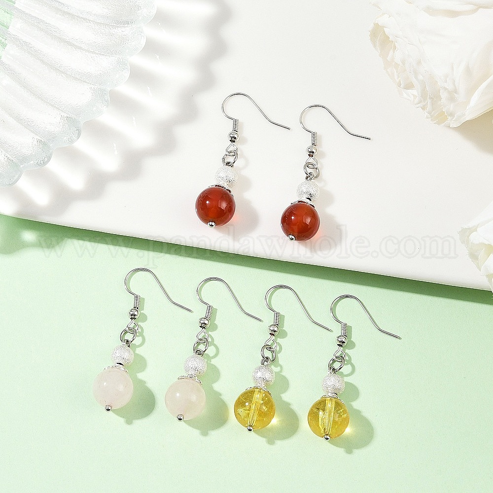 3 пары латунных серег с подвесками из натуральных и синтетических драгоценных камней, круглые (036N1E)
