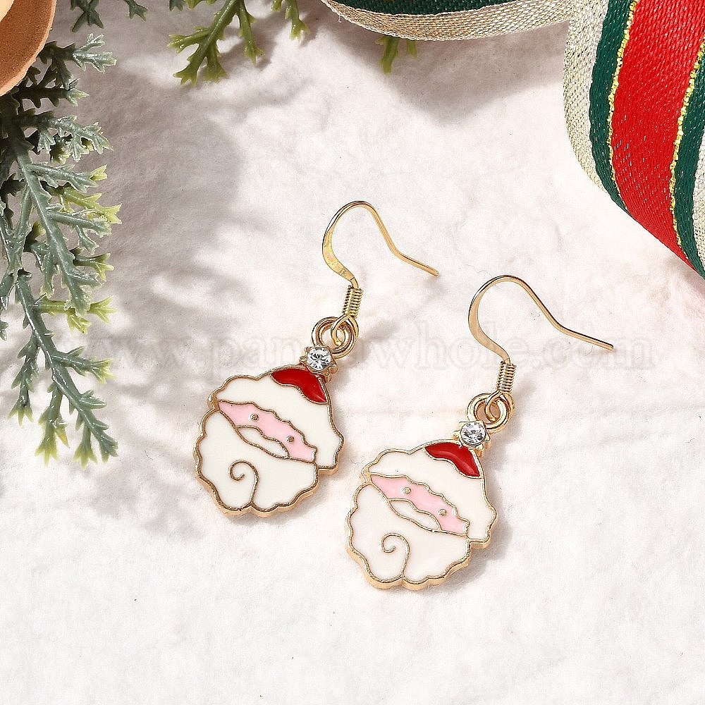 • Золотой Болтаться серьги сплава эмали, Дед Мороз, со стразами, золотые, 37.5x15.5 мм