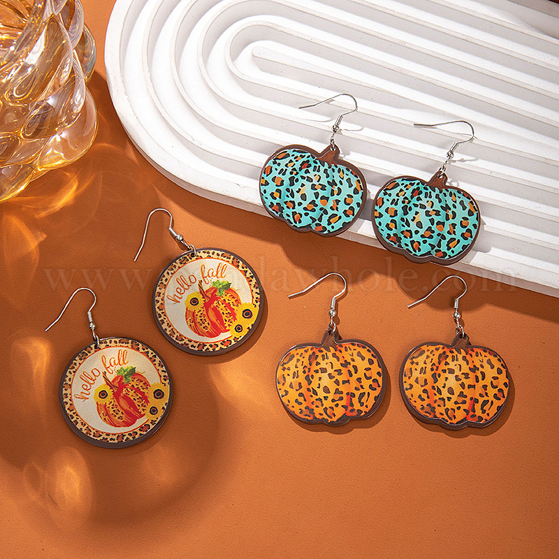 Акриловые серьги-подвески в виде тыквы с леопардовым принтом, платина